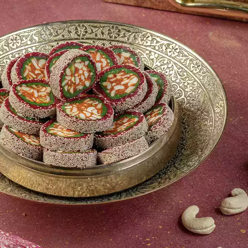 Anjeer Patra is a beautifully crafted sweet that pays homage to the fig in the most creative way shaped like a delicate leaf and made from the finest dried anjeer (figs) blended with wholesome dry fruits. The natural sweetness of figs means no excessive sugar is needed, keeping this mithai wholesome and rich in natural nutrition including fiber, potassium, and antioxidants. The leaf shape makes each piece visually distinct and elegant, making Anjeer Patra a wonderful addition to premium mithai boxes and health-conscious gift hampers. For those who want their sweet to also nourish, Anjeer Patra is a choice that feels as good as it tastes.