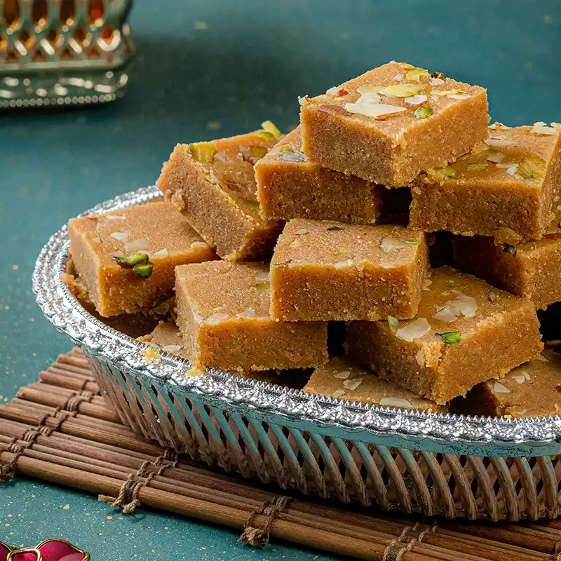 Besan Barfi is one of those timeless Indian sweets that never goes out of fashion. Made from carefully roasted gram flour (besan) cooked in pure ghee and sweetened to just the right level, this barfi has a rich aroma and a smooth, fudge-like texture that melts the moment it touches your tongue. We prepare our Besan Barfi in small batches to ensure freshness and quality in every piece. Whether it is a pooja, a family gathering, or a festival celebration, Besan Barfi is always the right choice.