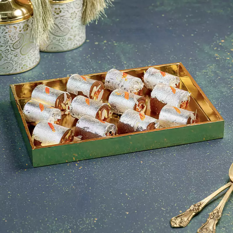 Guava Roll is a fruity, refreshing departure from the usual nut and milk-based Indian sweets. Made with the natural goodness of ripe guava, this soft, chewy sweet roll delivers an unmistakable tropical flavor that is both familiar and delightful. The natural tanginess of guava is perfectly balanced with just the right amount of sweetness, creating a treat that feels light on the palate but deeply satisfying. With its vibrant color and unique flavor, Guava Roll adds a refreshing splash to any mithai box or sweet platter. A wonderful choice for those who love fruit-forward desserts that are a little different from the ordinary.