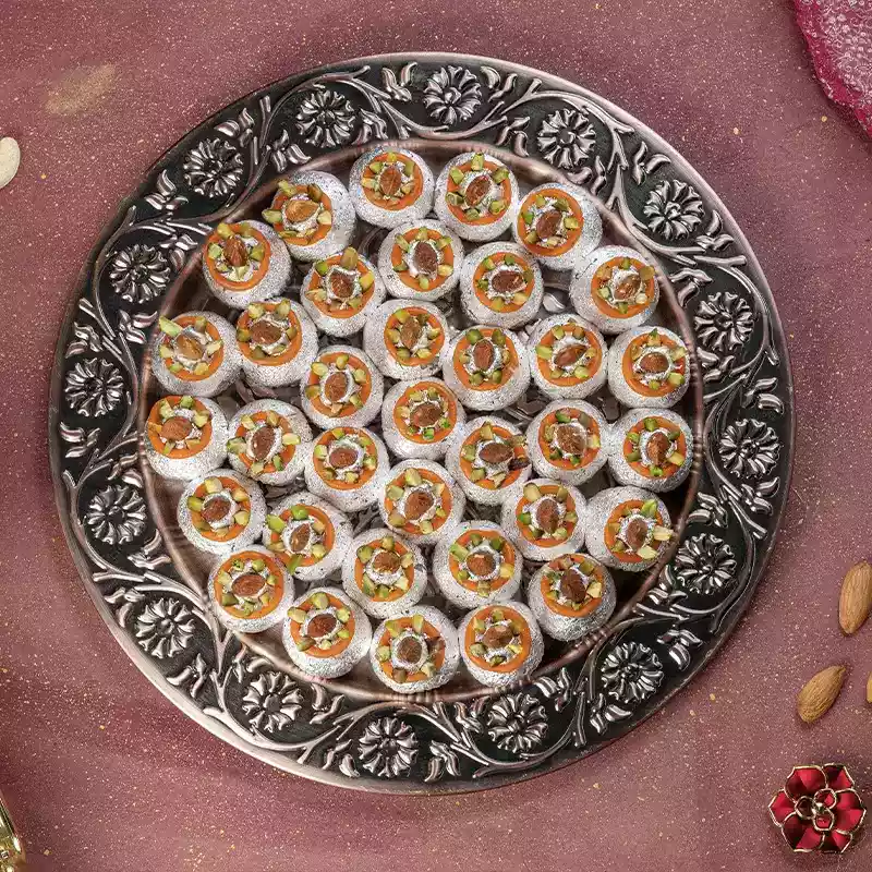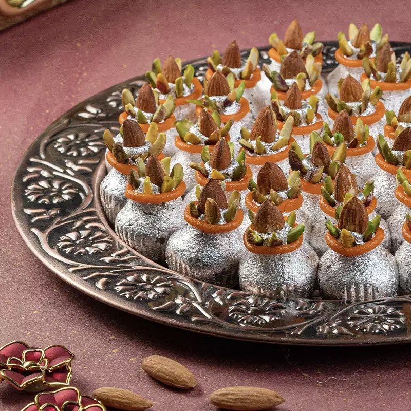 Kaju Kalash is where artistry meets tradition. Shaped like the sacred Kalash, a symbol of abundance and auspiciousness in Indian culture, this sweet is crafted entirely from the finest cashew paste, delicately sweetened and molded by hand into its iconic form. The attention to detail in each piece reflects the skill and care that goes into traditional Indian mithai making. Beyond its visual appeal, Kaju Kalash carries a spiritual significance that makes it especially meaningful during pujas, religious ceremonies, Navratri, and Diwali. A sweet that is as much a blessing as it is a treat.
